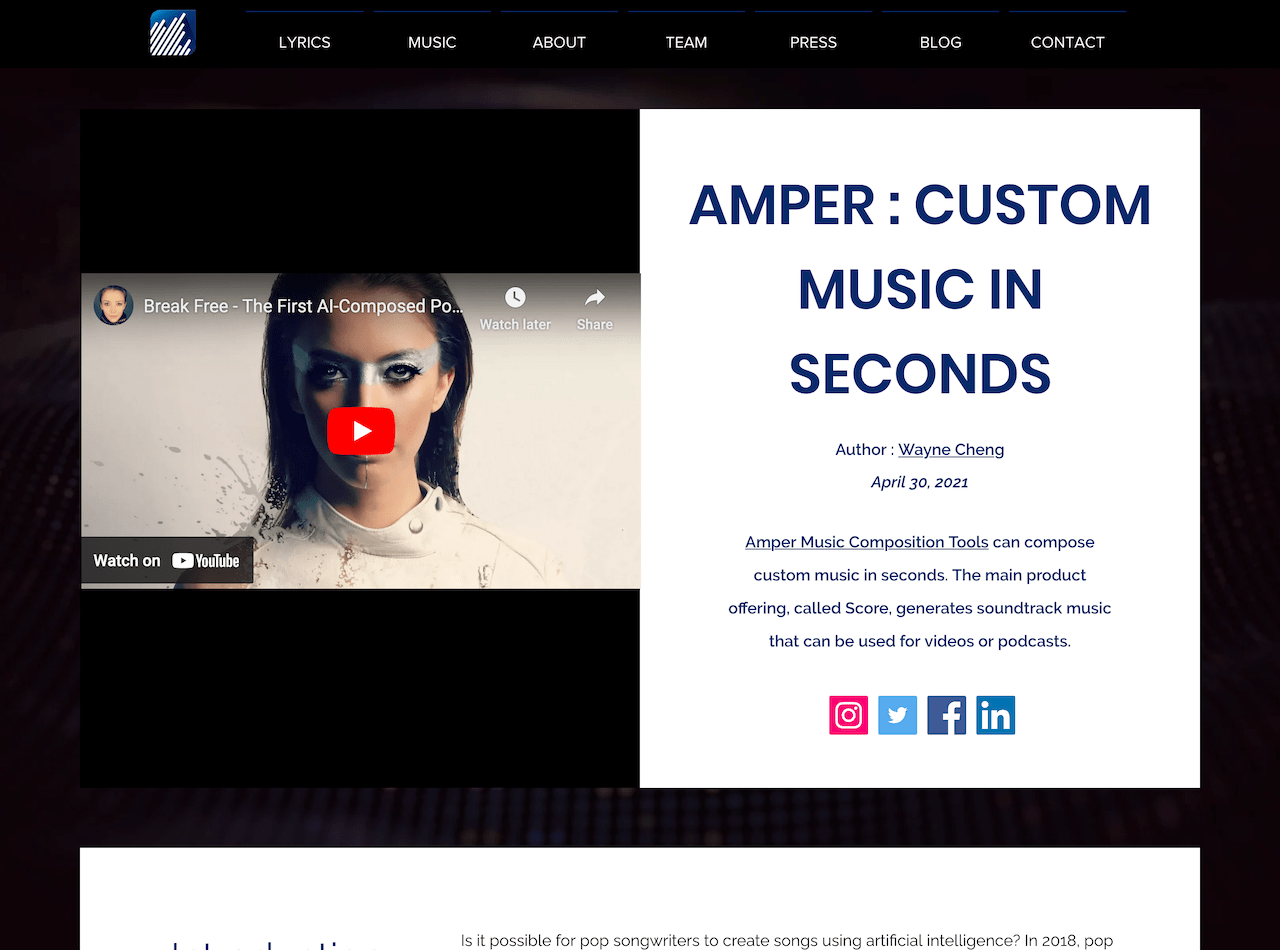 Amper's mission is to make music expression accessible to everyone, regardless of their educational background, experience level, or available resources. Powered by Creative AI, Amper develops tools that assist users in producing and modifying creative music. With over a million unique samples and a vast array of instruments, Amper provides endless possibilities for users to explore and create.